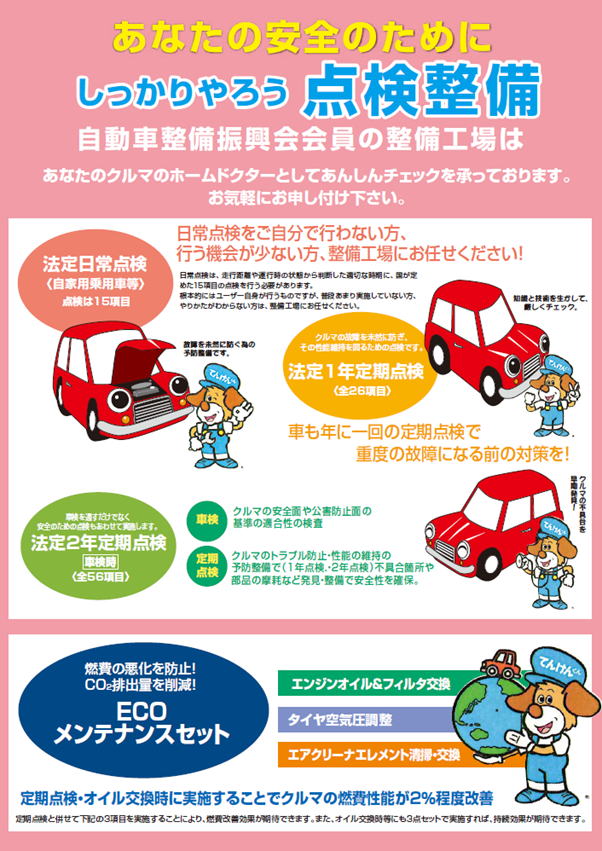 安心してドライブを楽しむためには、定期的な点検が必要です! |